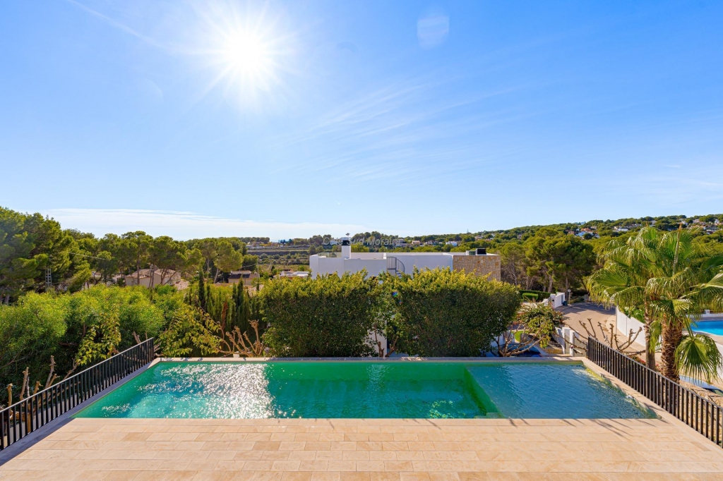 This 425 sqm villa built on 3 levels on a 925sqm plot, facing south with only 1300 meters from the beach, restaurants, supermarkets and the center of Moraira.This villa is a technically advanced concrete construction in all facets.