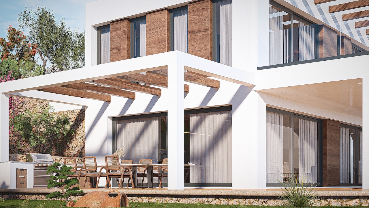 Conçue pour une vie méditerranéenne détendue, le rez-de-chaussée comprend un salon lumineux ouvert, un coin repas et une cuisine entièrement équipée avec accès direct à une naya confortable, parfaite pour profiter de la vie en plein air toute l'année.