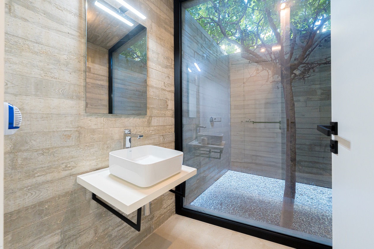 Au premier étage, quatre chambres avec trois salles de bains, toutes avec accès aux terrasses couvertes orientées sud, ainsi qu’un patio spacieux.