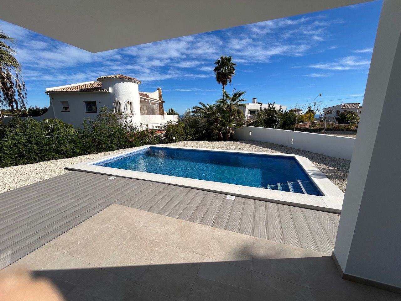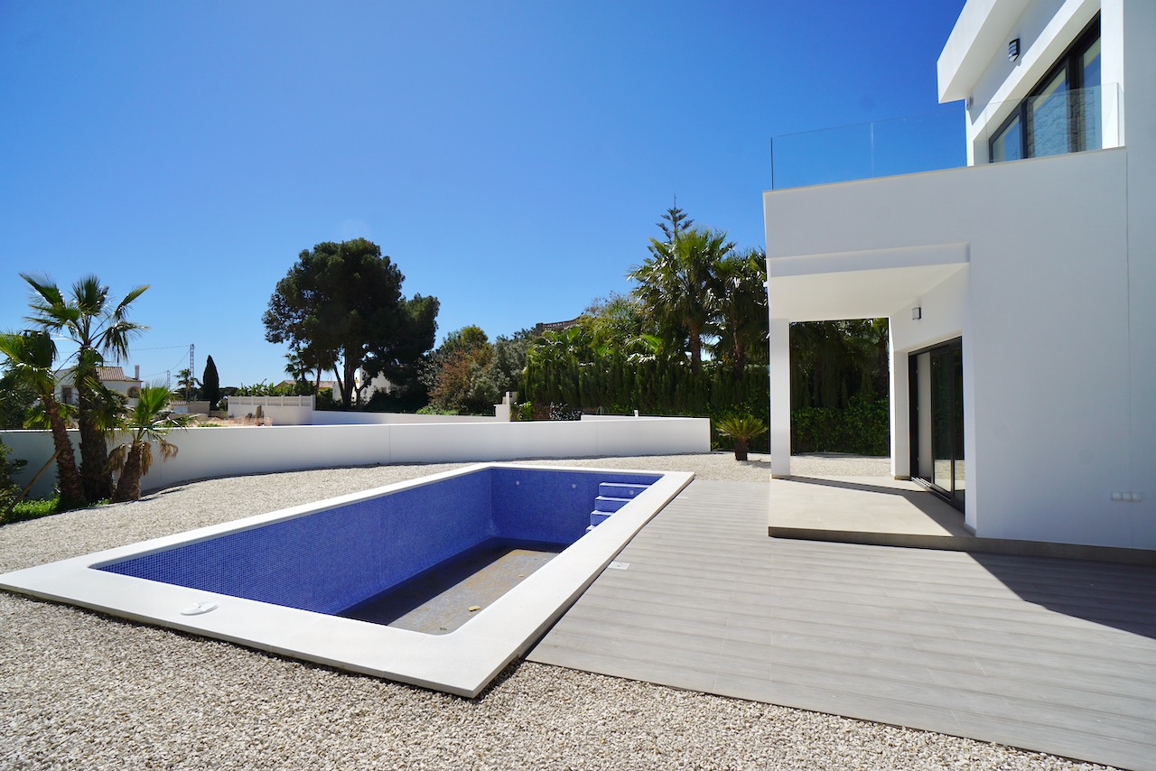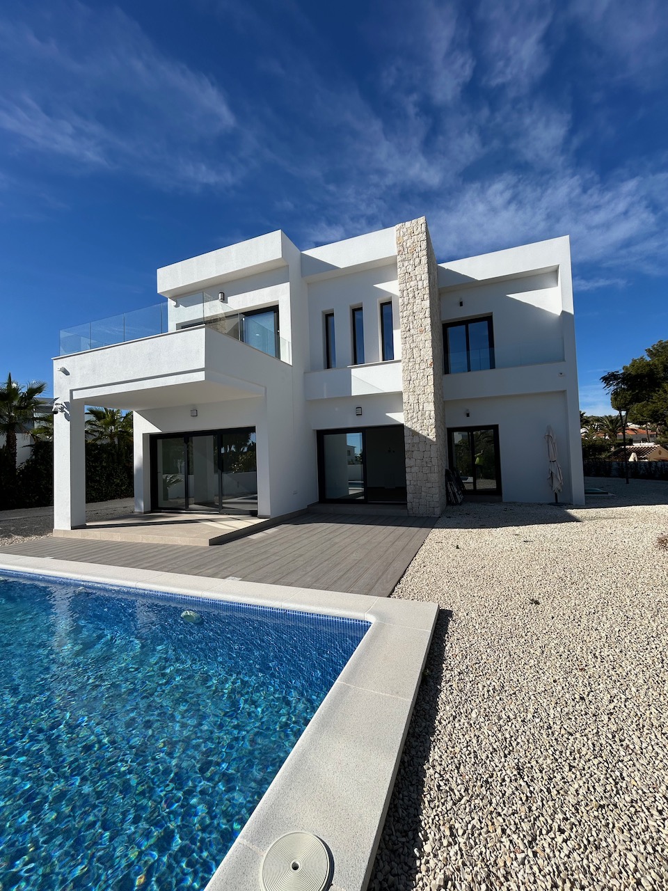 Key Features: Modern villa with stunning sea views3 spacious bedrooms, 3 bathrooms (1 en-suite)Private garageSouth-facing4x8 metre swimming pool Extensive terraces, and a landscaped gardenUnderfloor heating and air conditioningSpacious plot with additional outdoor parking and a private green area This property is very near completion.