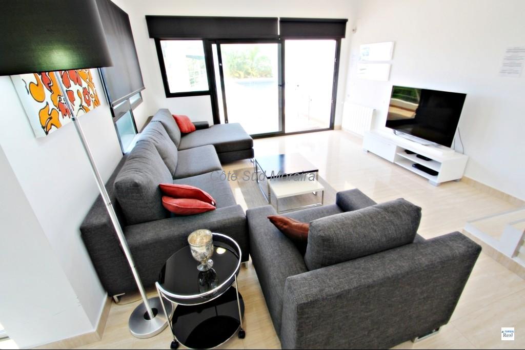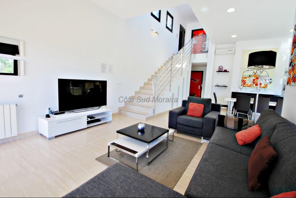 Further steps lead down to the bedrooms: 2 double bedrooms with balcony and one twin bedroom with a shower room and a bathroom.